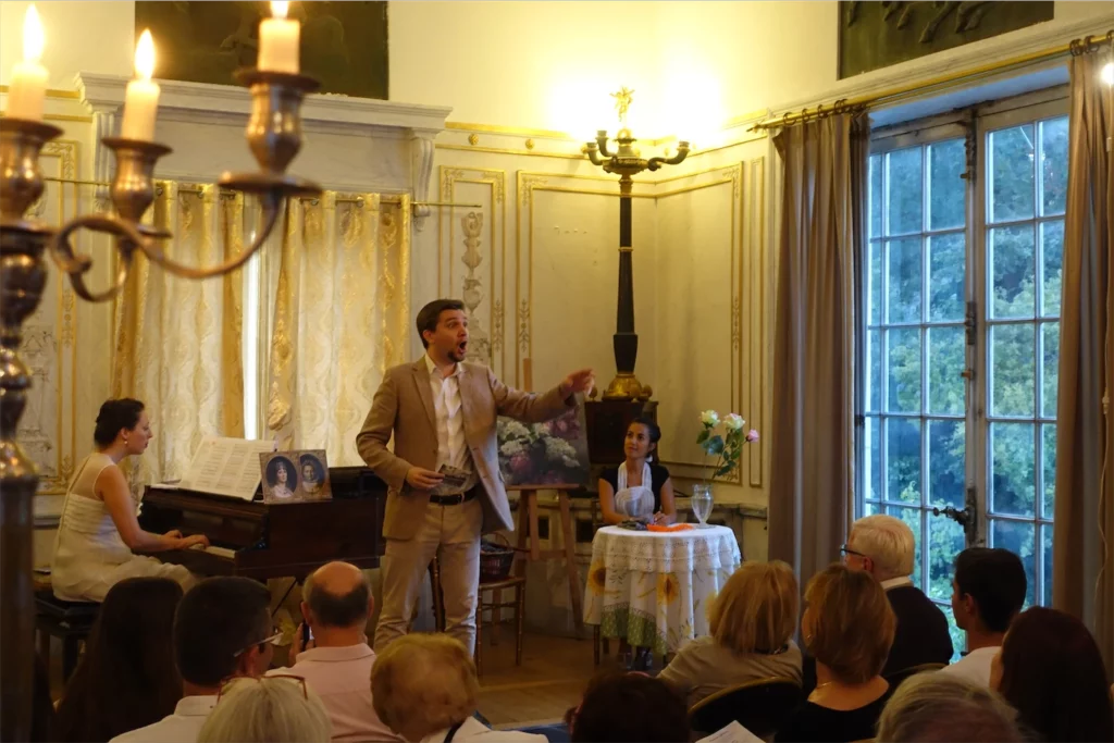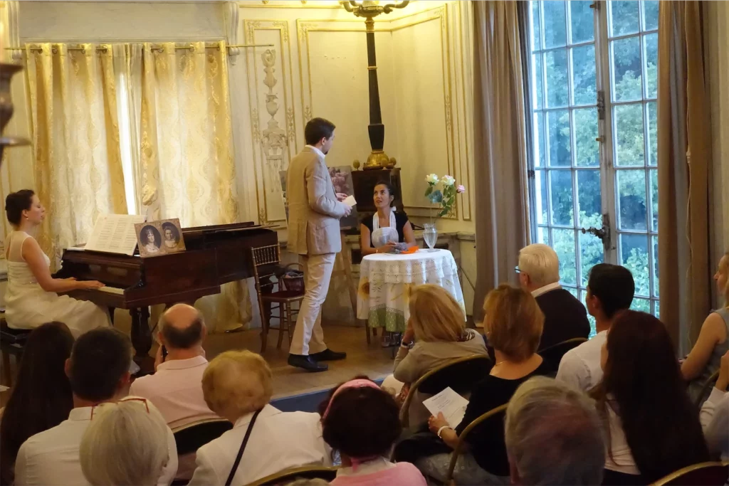 Ce programme, conçu spécialement pour les Journées européennes du patrimoine autour du thème de l’année “Arts et divertissements”, développe trois dimensions intimement liées au lieu qui l’accueille : le cadre festif du théâtre de société avec un large extrait de Pomme d’Api, une opérette en un acte de Jacques Offenbach, dont nous célébrons le bicentenaire de la naissance cette année ; l’univers du salon avec des romances, dont une tirée d’un opéra-comique d’Adolphe Adam, Joséphine ou le Retour de Wagram, mettant en scène le personnage de Joséphine ; un bouquet d’évocations botaniques et ornithologiques en référence à la grande serre historique du château de la Petite Malmaison.